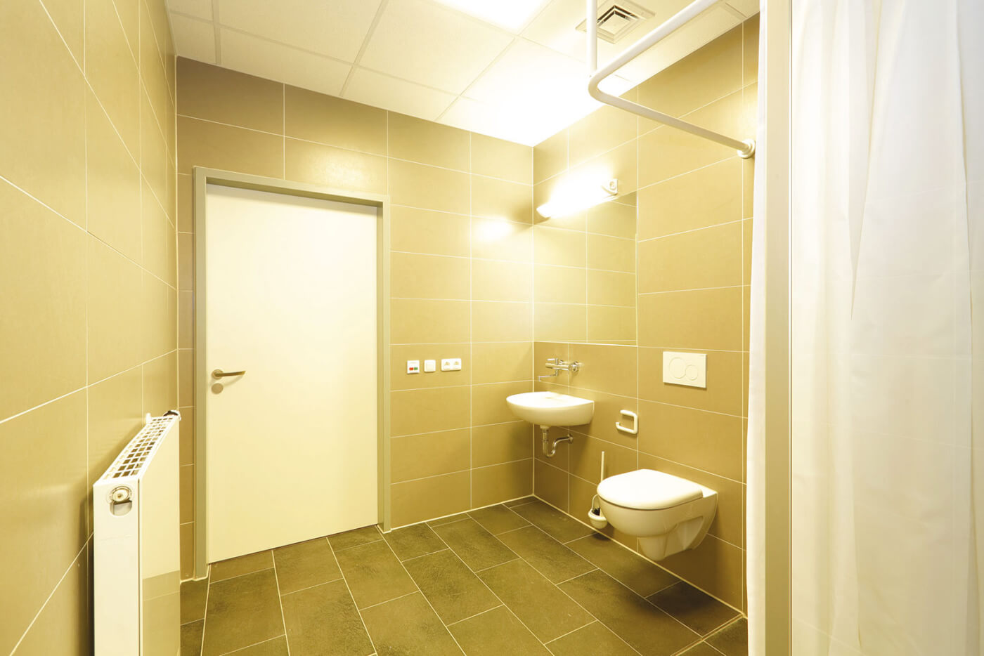 Aus den ehemaligen Räumen einer Großküche wurden wohnliche Einzelzimmer für die Wiedereingliederung psychisch kranker Patienten geschaffen. Zahlreiche Oberlichter durchfluten die Räume mit Tageslicht und sorgen für eine behagliche Stimmung. Die zurückhaltende Farb- und Materialgestaltung verleiht den Räumlichkeiten Ruhe.