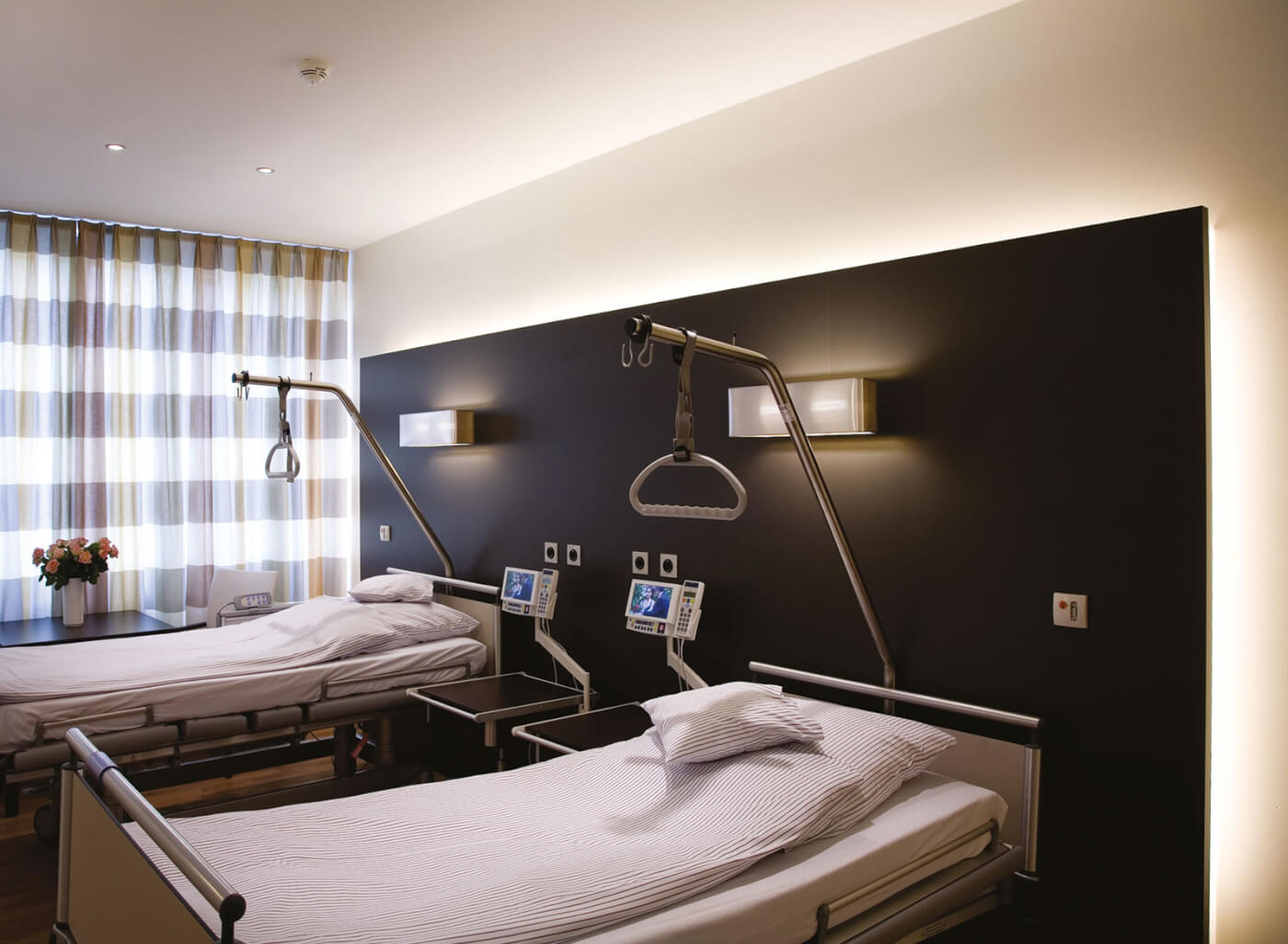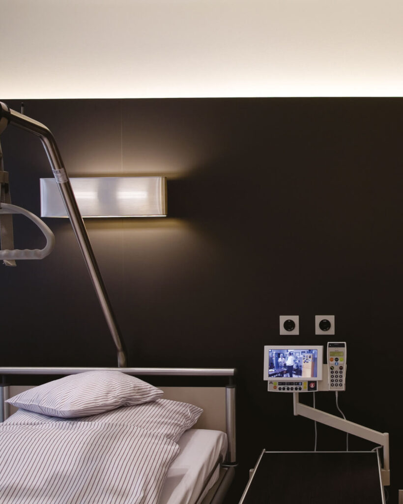 Schlichte zurückhaltende Materialien unterstreichen – in Verbindung mit stimmungsvollen Lichtakzenten den Hotelcharakter.
